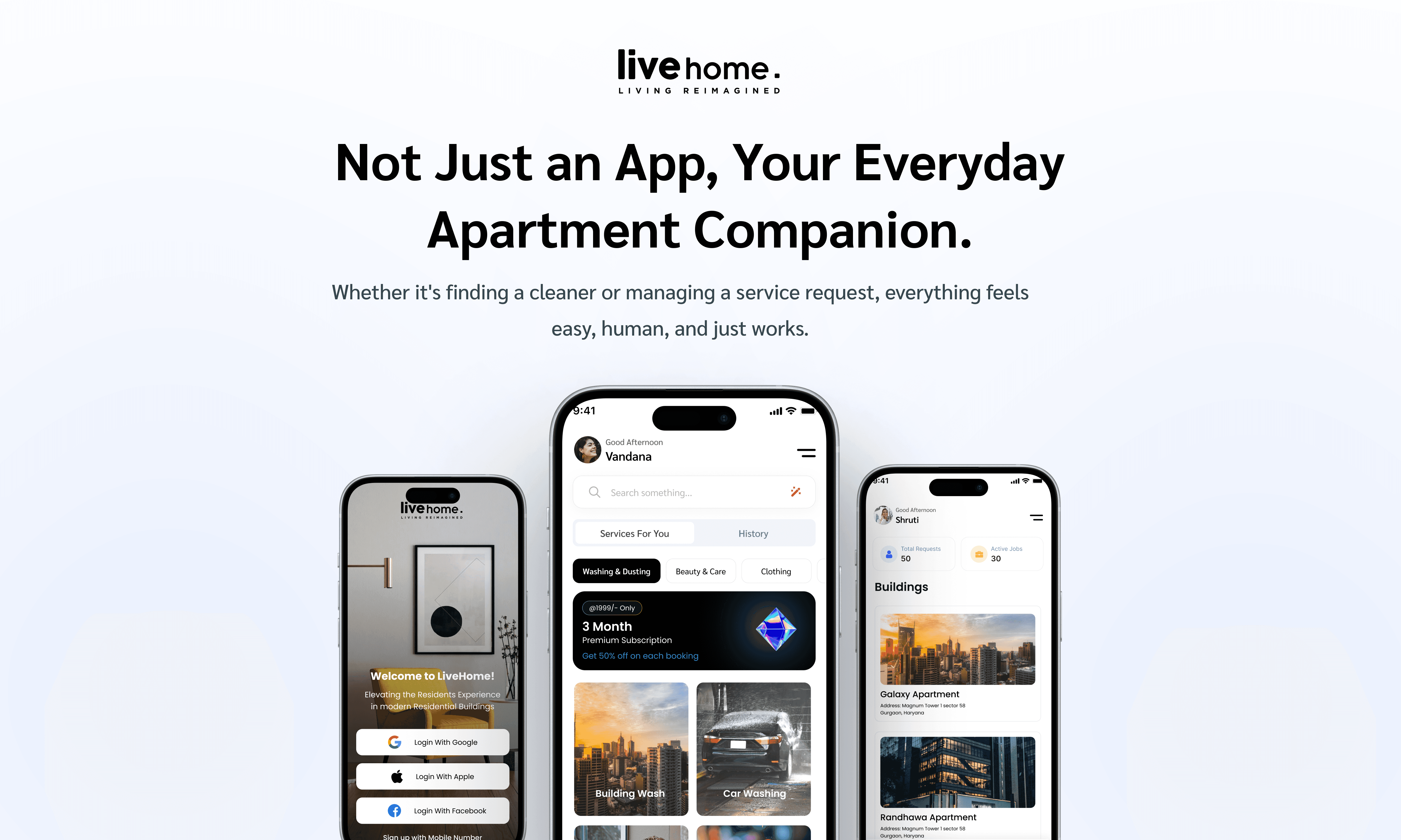 A smart apartment platform that connects residents, managers, and vendors—making everyday services easy to book, manage, and track, all from one app.